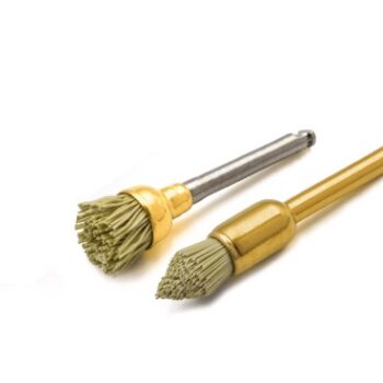 Cepillos con fibras revestidas: copas y puntas. Para el pulido de composites, pincele en rápidos toques con presión firme a 5000-10000 RPM. La integridad se mantiene a través de un número limitado de ciclos de autoclavado.